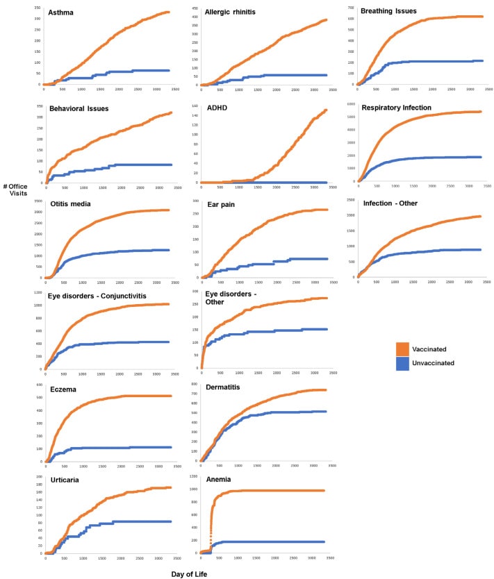 - ADHD – 0 cases in the unvaccinated group